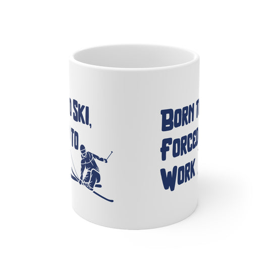 Born to Ski Forced to Work, Ski Winter Sports Quote 11oz Ceramic Mug