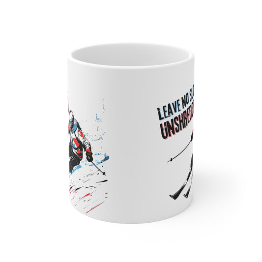 Left No Slope Unshredded, Ski Expert Themed Quote 11oz Ceramic Mug