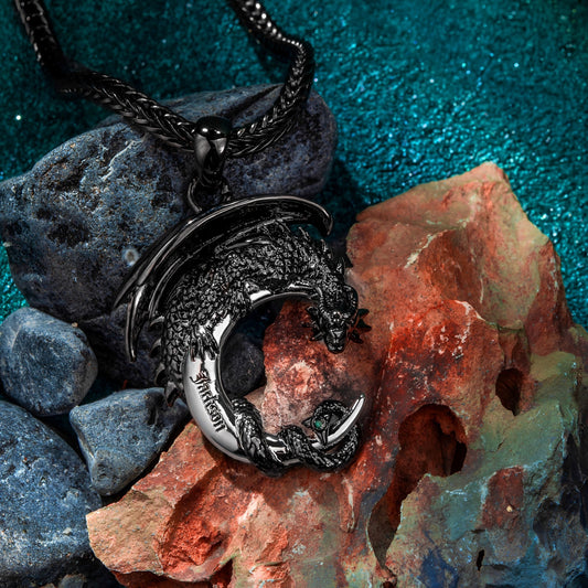 Customized Moon Dragon Birthstone Necklace