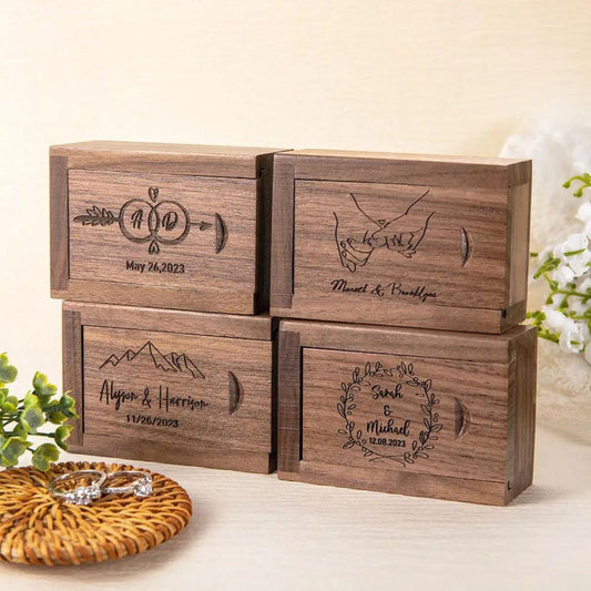 Personalized Wooden Heart Wedding Ring Box with Magnet