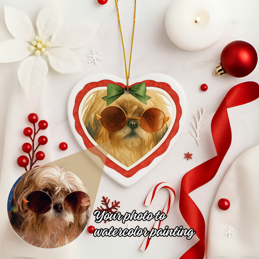 Pet Watercolor Christmas Personalized Heart Tree Ornament