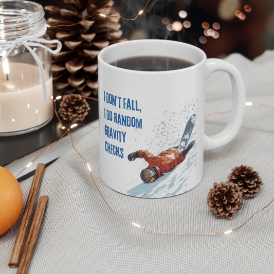 Snowboard Gravity Check 11oz Ceramic Mug "I Don't Fall I Do Random Gravity Checks"