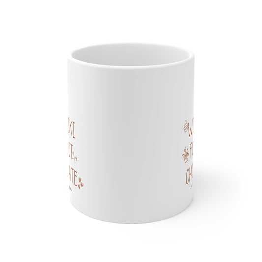 Will Ski for Hot Chocolate, Ski Winter Sport Themed 11oz Ceramic Mug