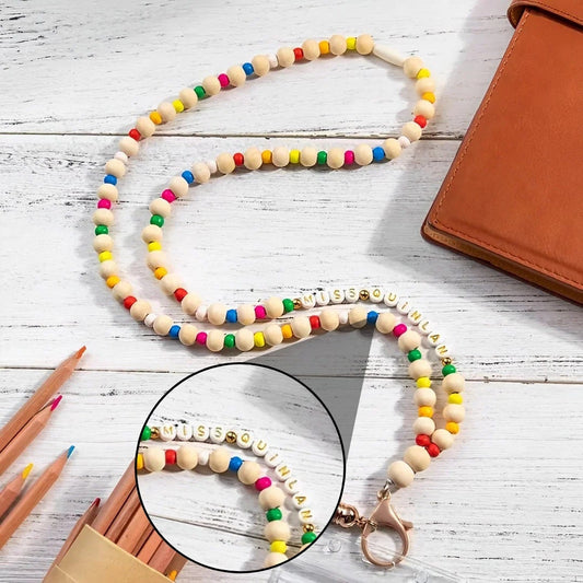 Custom Bohemian Rainbow Lanyard Badge with Name Engraved