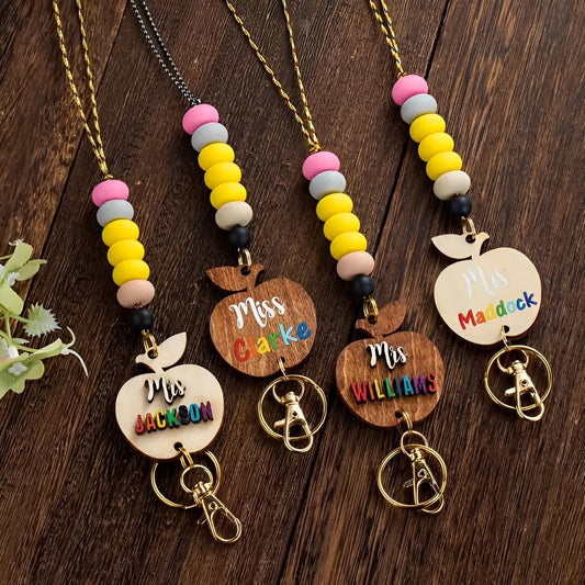 Personalized Apple Teacher Lanyard with Name, include ID Holder