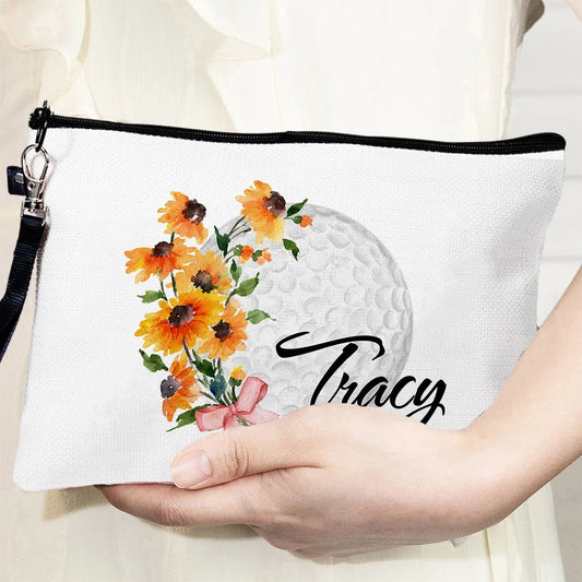 Personalized Birth Flower & Name Golf Cosmetic Bag