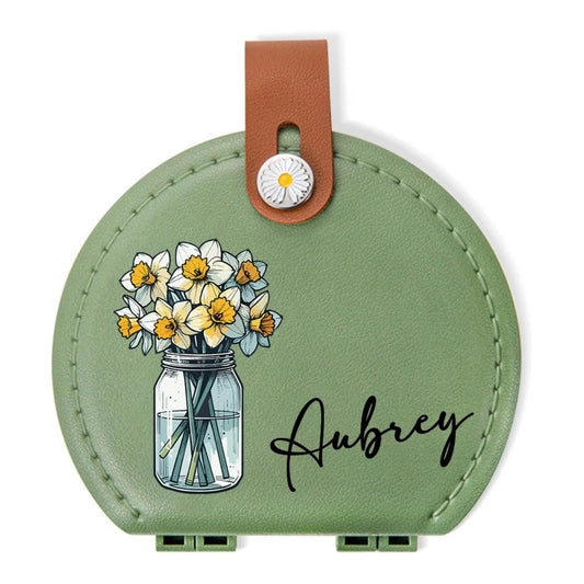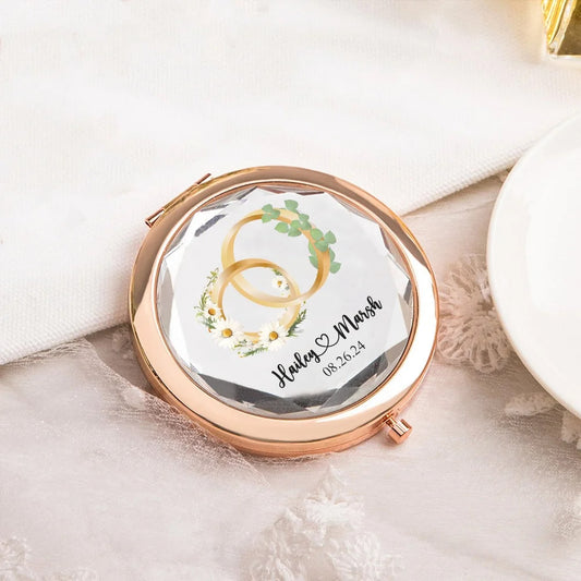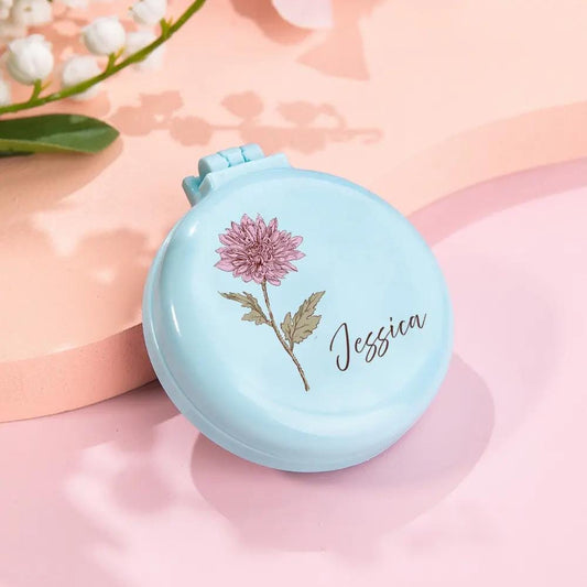 Personalized Birth Flower & Birth Tree Wedding Themed Pocket Makeup Mirror