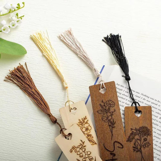 Custom Name + Birth Flower Wooden Bookmark with Tassel