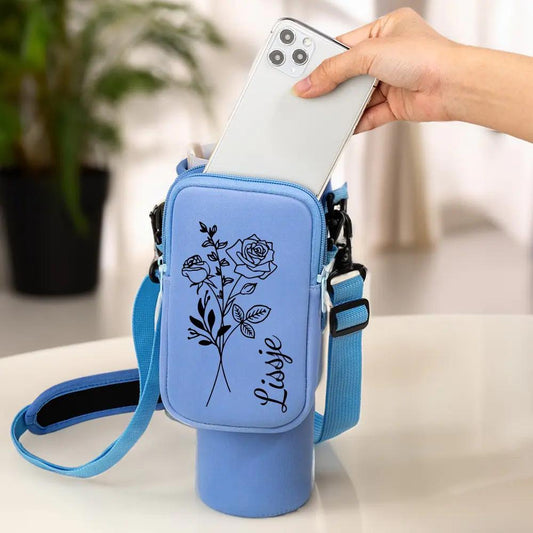 Custom Name Birth Flower Cross-body Tumbler Holder & Phone Pouch (40oz)