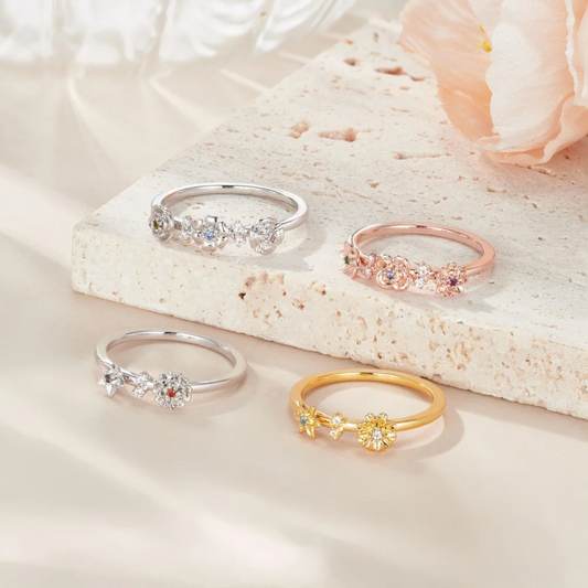 Multiple Birth Flowers Ring with Birthstones