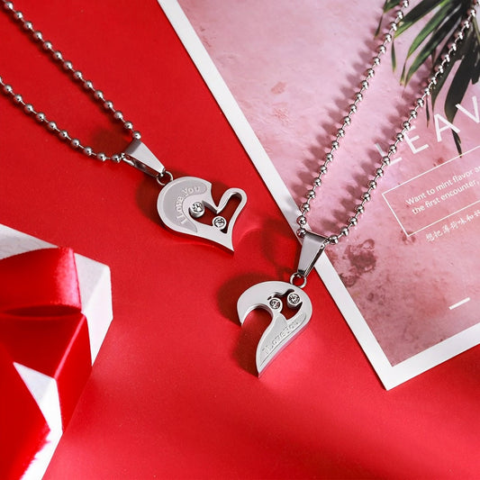 Interlocking Couple's Heart Necklace with Custom Engraving