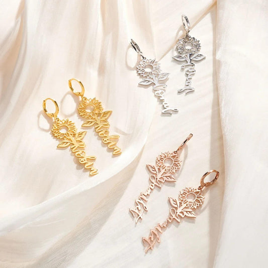 Personalized Sideway Name Necklace with Birthstone & Flower