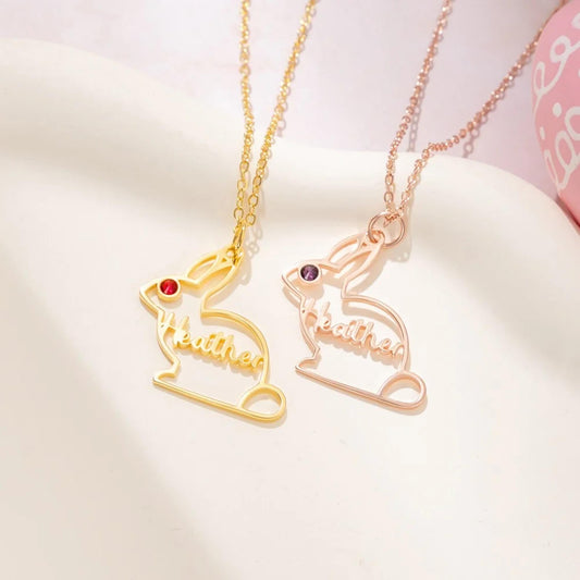 Custom Name & Birthstone Bunny Pendant Necklace