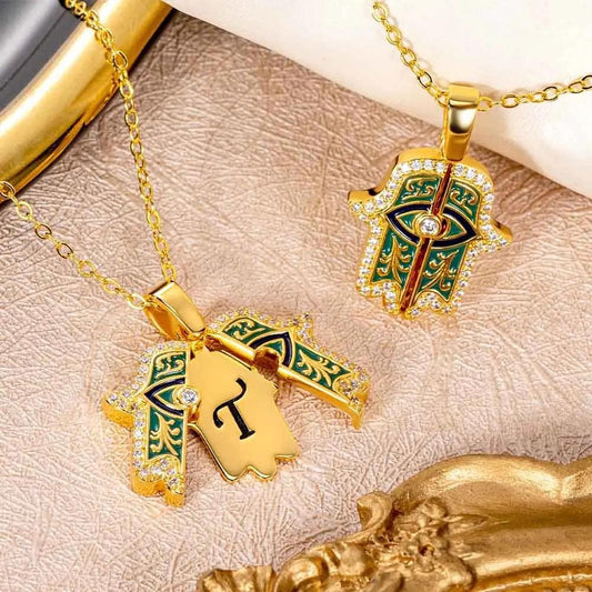 Personalized Initial Gold Hamsa Necklace