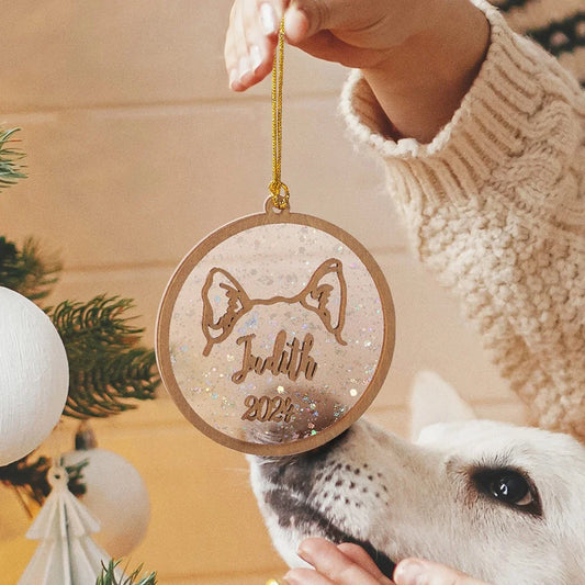 Personalized Dog Ears Wooden Christmas Tree Memorial Ornament