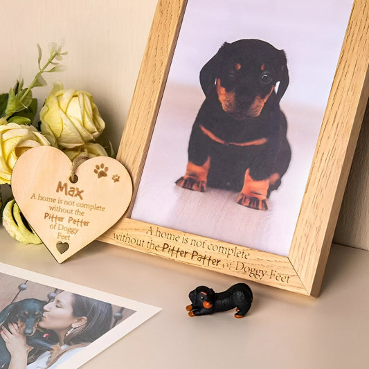 Personalized Dog Photo Frame with Wooden Heart Plaque