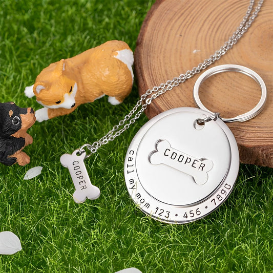 Matching Dog Collar Tag & Bone Necklace with Custom Engraving