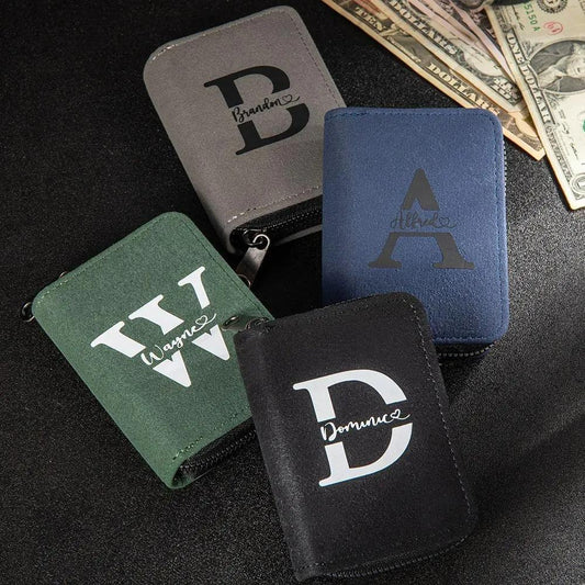 Custom Name & Initial Suede Card Holder with Multiple Card Slots