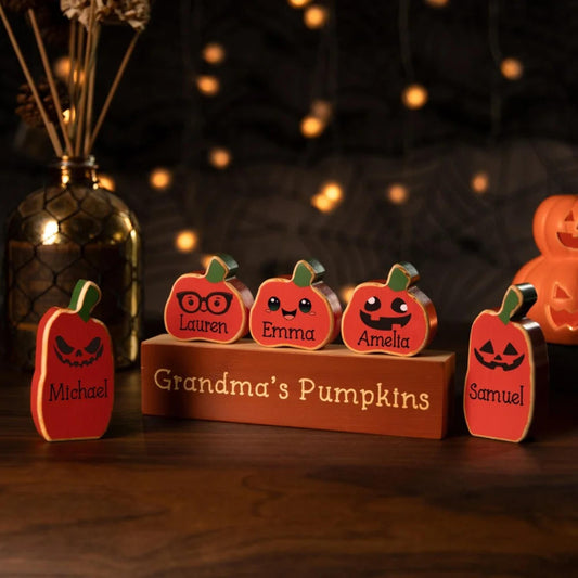 Custom Halloween Pumpkin Wooden Ornaments with Faces