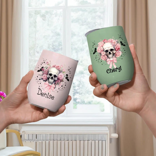 Personalized Vintage Gothic Pearl Skull Locket Necklace + Engraving