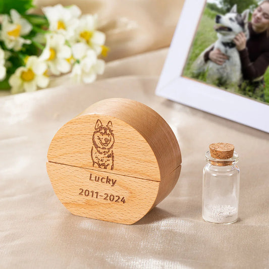 Personalized Pet Ear & Portrait Memorial Box for Ashes