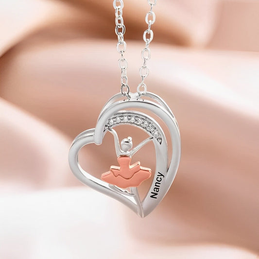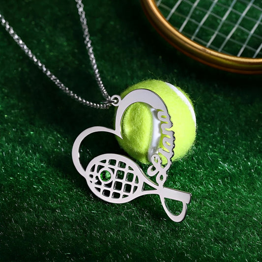 Tennis Racket Heart Necklace with Custom Birthstone and Name