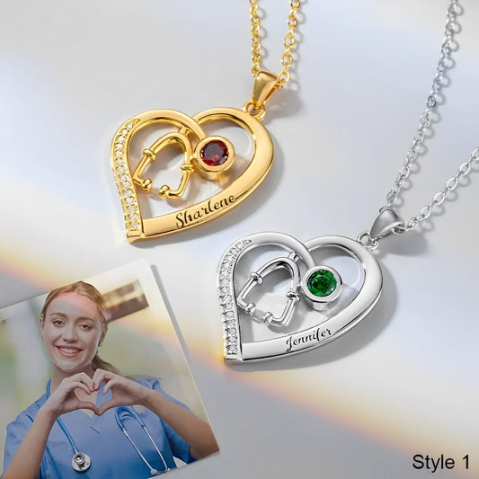 Customized Birthstone Stethoscope Name Necklace and Ring