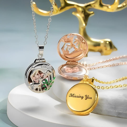 Custom Photo Elk Locket Necklace (Mother & Baby) + Engravings