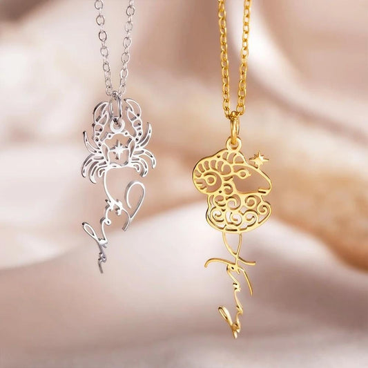 Customized Retro Bohemian Cow Necklace with Birthstones