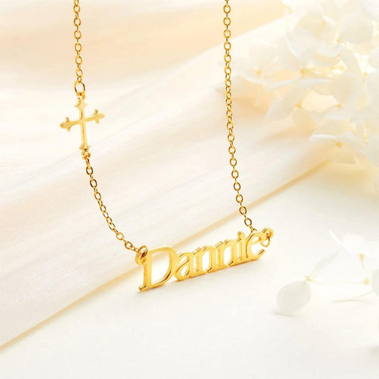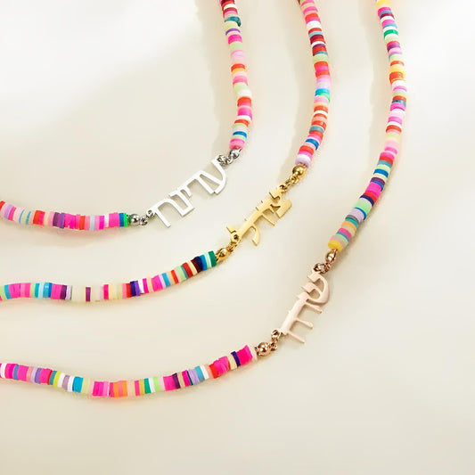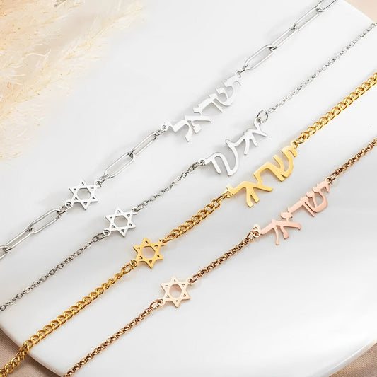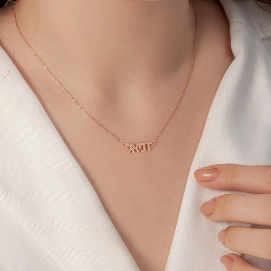 Personalized Hebrew Name Necklace with Zircon Detailing