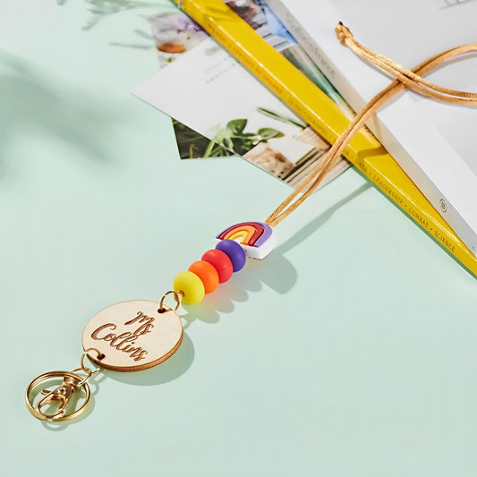 Custom Bohemian Rainbow Lanyard Badge with Name Engraved