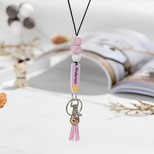 Customized Mini Pencil Teacher Lanyard with Cute Tassel