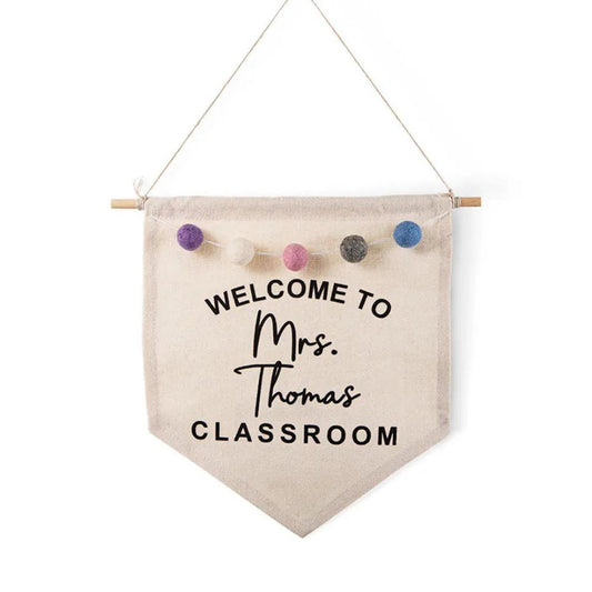 Personalized Welcome Sign Boho Teacher Door Hanger with Felt Balls