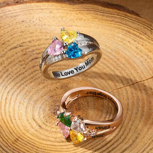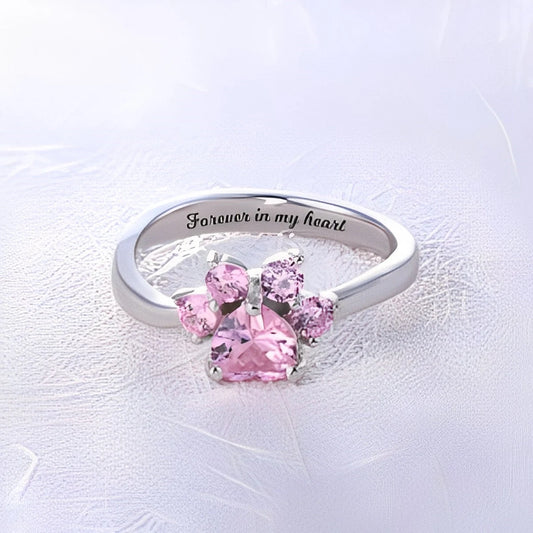 Custom Paw Heart Birthstone Ring with 1-4 Paws