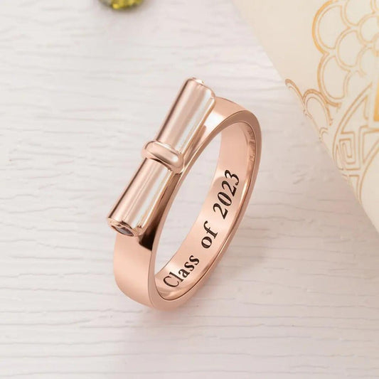 Delicate Custom Graduation Ring with Engravings and Birthstone