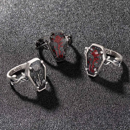 Personalized Gothic Coffin Vintage Rose Ring