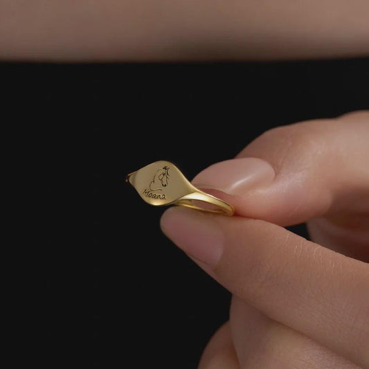 Custom Pet Portrait Signet Ring + Name & Engraving
