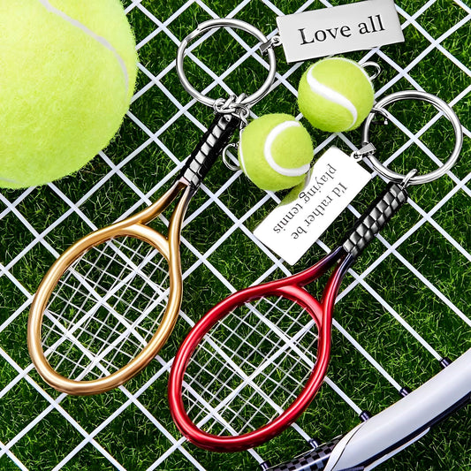 Tennis Racket Keychain with Engraved Name Tag + Mini Tennis Ball