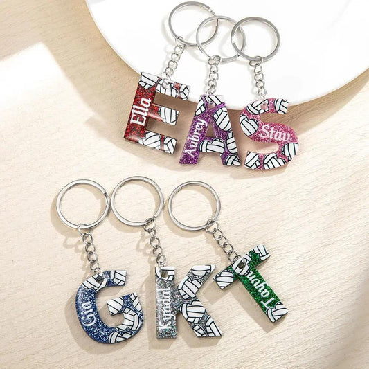 Personalized Initial + Name Voleyball Keychain