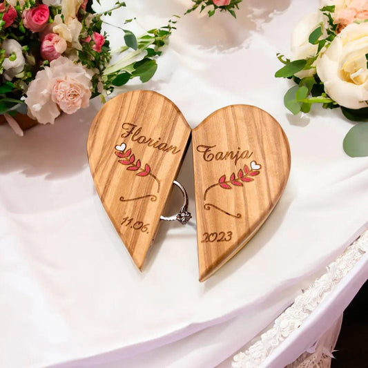 Personalized Wooden Heart Wedding Ring Box with Magnet