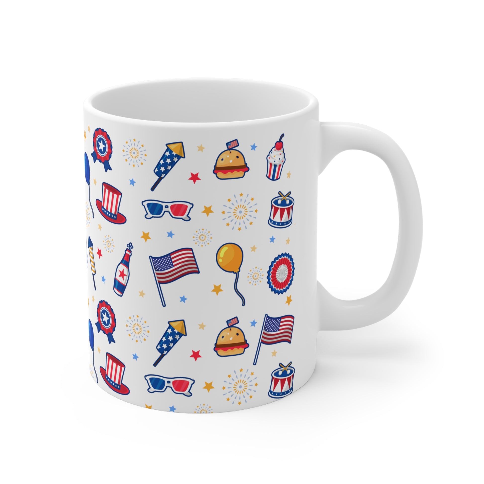 This 11oz ceramic mug is the perfect way to show your patriotic spirit this 4th of July. Featuring a vibrant design celebrating American Independence Day, it's a must-have for coffee lovers and anyone who wants to add a touch of Americana to their morning routine.
