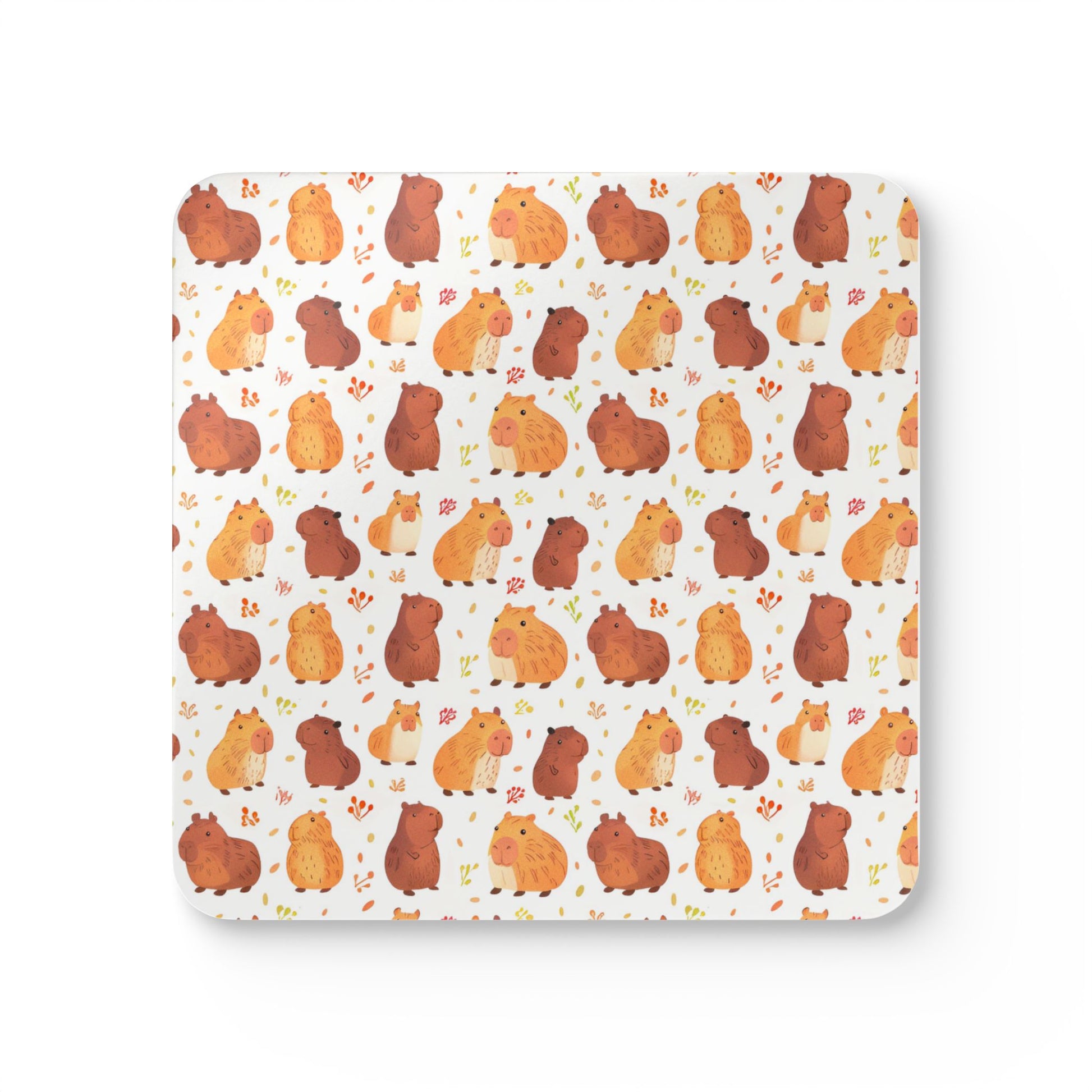 Elevate your drinkware and add a splash of charm to your home decor with our Capybara Print Corkwood Coasters! Featuring adorable chibi style capybara designs, this coaster set is perfect for capybara lovers and anyone who appreciates unique, fun accessories.