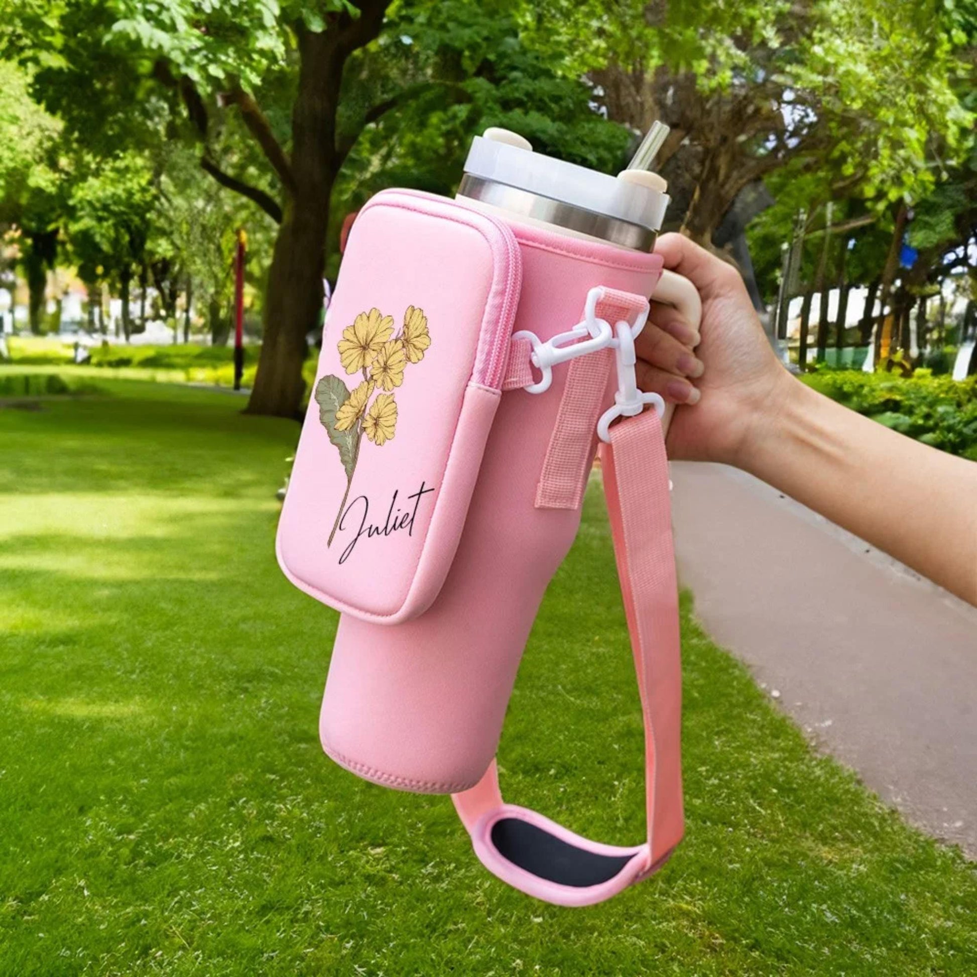 Custom Name Birth Flower Cross-body Tumbler Holder & Phone Pouch (40oz)