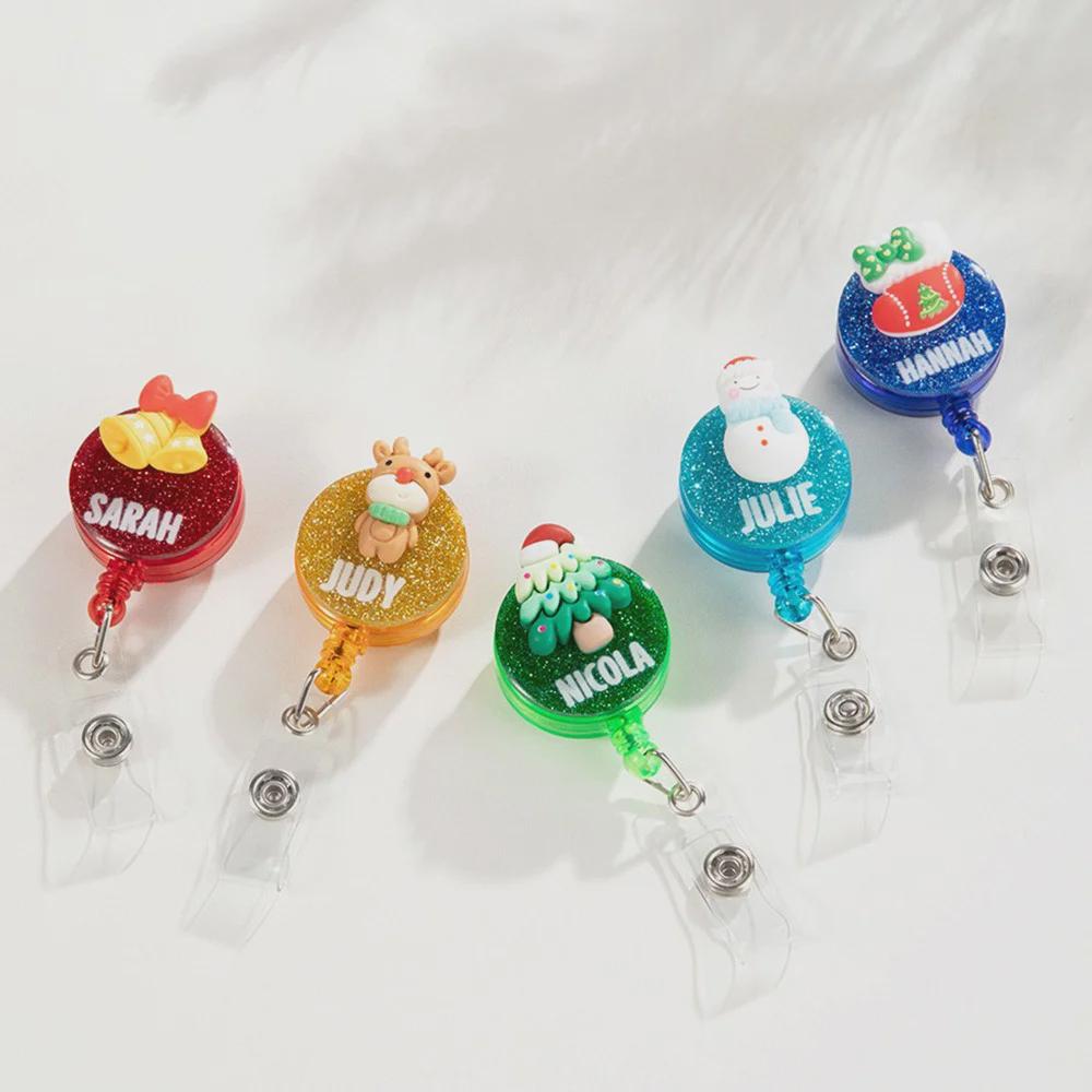Bring holiday cheer to your workplace with this personalized Christmas glitter badge reel. Featuring festive designs like Santa, snowmen, elk, and bells, this badge holder is a fun and practical way to celebrate the season while keeping your ID safe and handy.