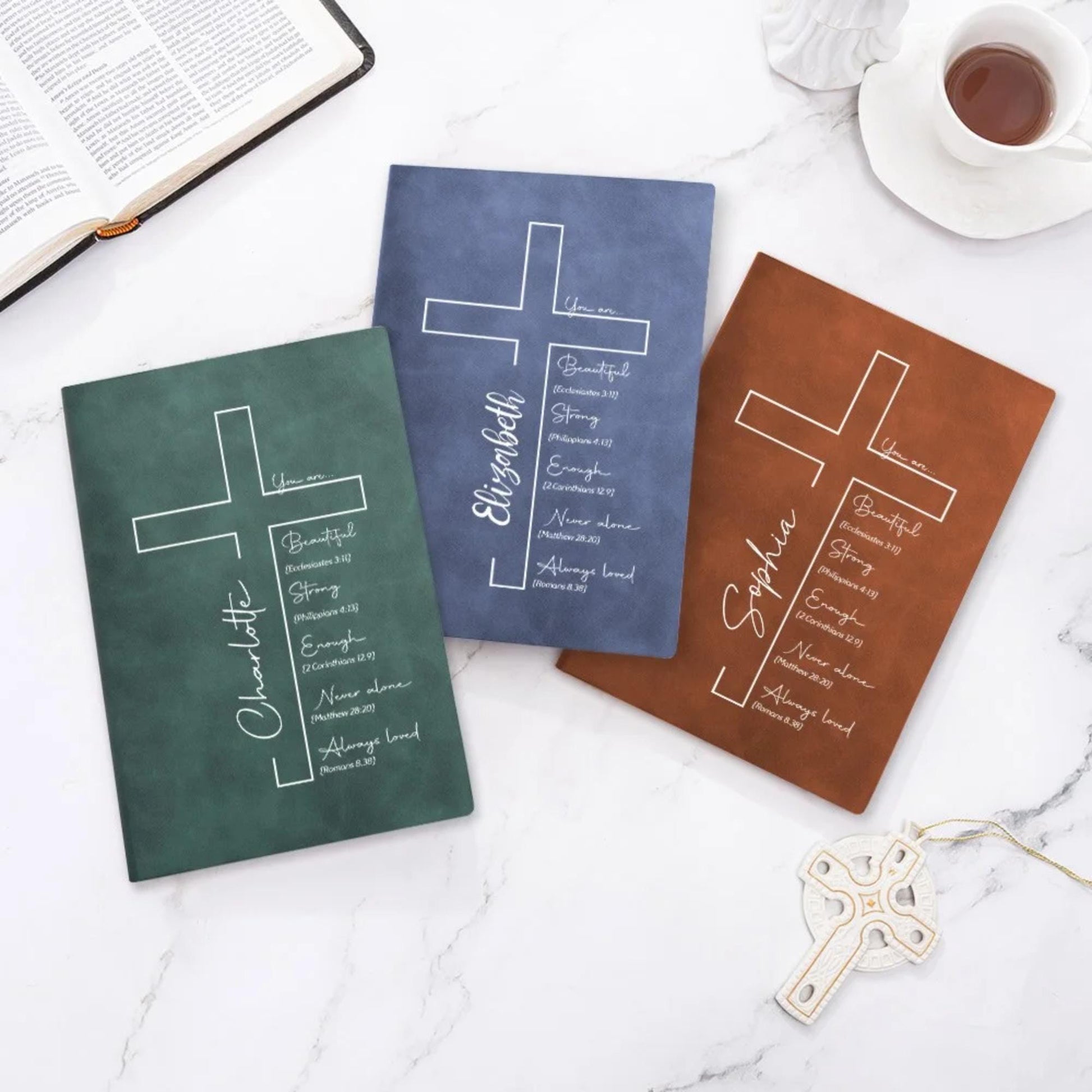 Discover the perfect blend of faith, gratitude, and personalized inspiration with our Custom Name Cross Leather Notebook. Crafted for those who cherish spiritual growth and heartfelt reflection, this beautifully designed prayer journal features inspiring Bible verses and a customizable name cover, making it a truly meaningful gift for family, friends, or yourself.