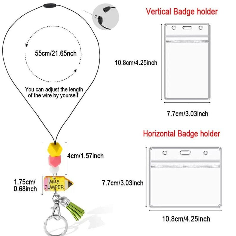 Elevate your teacher style with our custom lanyard. Crafted with care, this silicone beaded lanyard features a pencil-shaped tag engraved with your name. It’s not just an ID holder; it’s a statement piece that keeps your essentials close during busy school days.