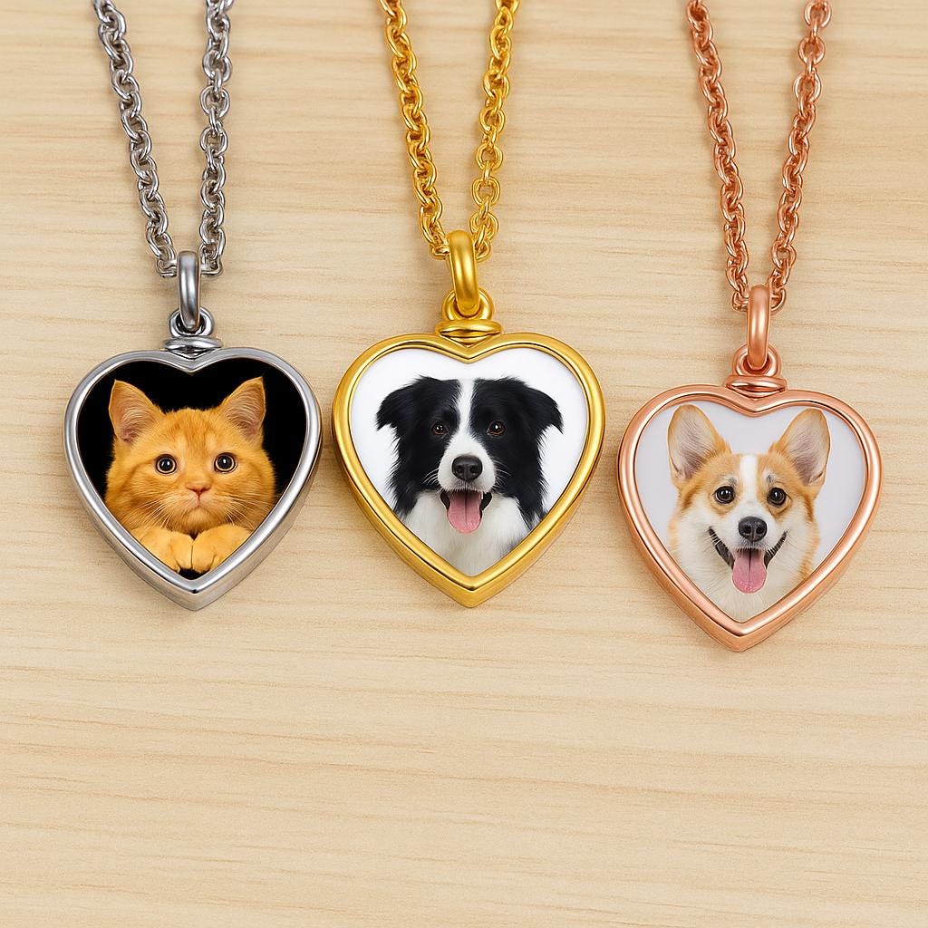 Honor the memory of your beloved pet with this personalized heart urn necklace. Designed to hold a small portion of ashes, it can be customized with your pet’s photo and engraved name, creating a touching keepsake that keeps their love close to your heart.