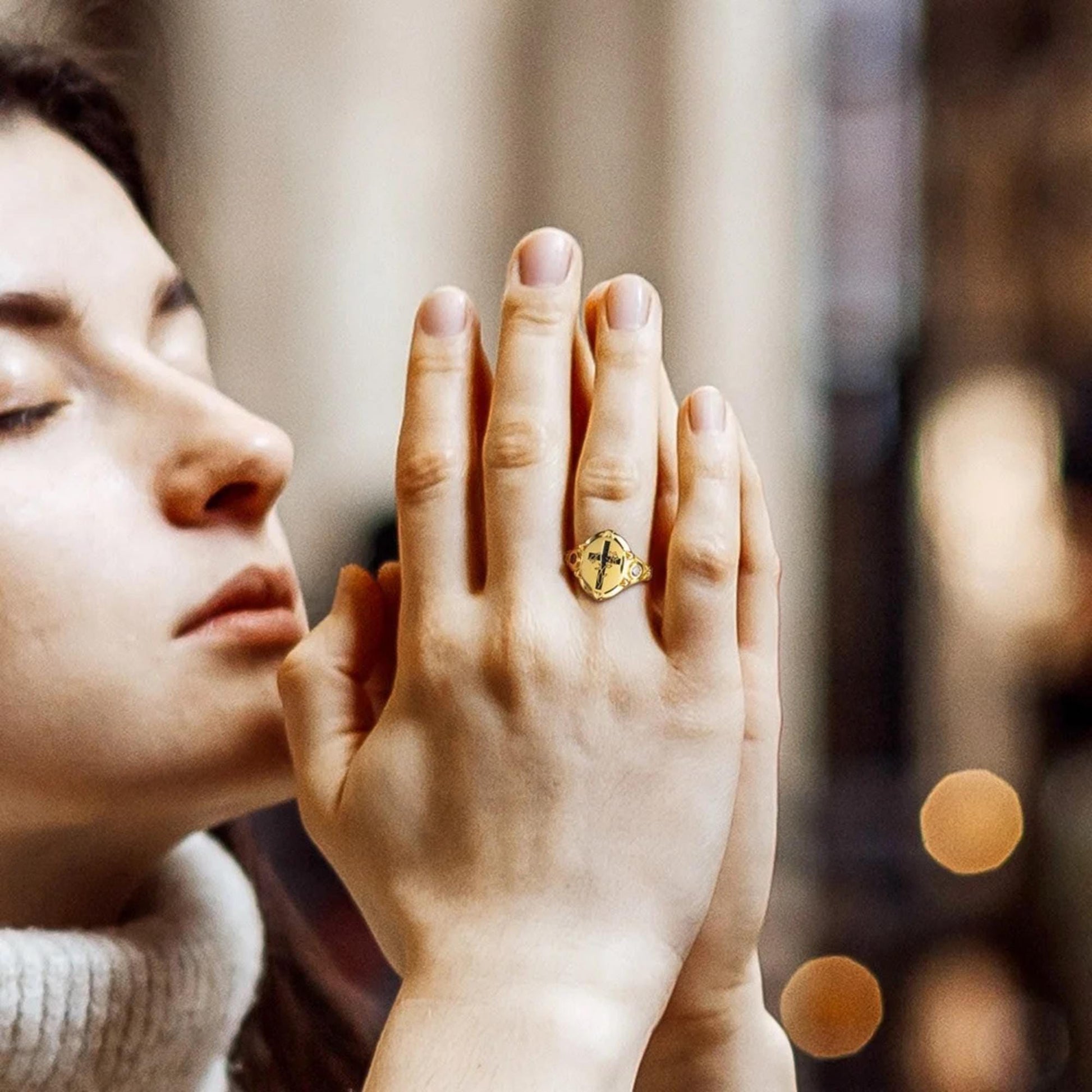 This signet ring is not only a beautiful statement piece but also a thoughtful gift for women who cherish their faith and personal stories. It arrives ready to be treasured, with options for custom engraving to add that personal touch. With its durable sterling silver construction and timeless design, this ring promises to be a cherished keepsake for years to come, perfect for Easter, birthdays, or just because.