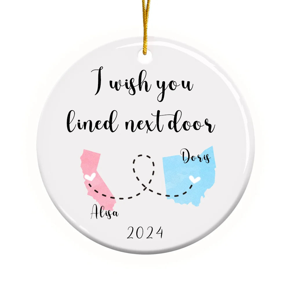 Send a little piece of your heart this holiday season. Order your custom 'I Wish You Lived Next Door' ornament today and make their Christmas extra special!