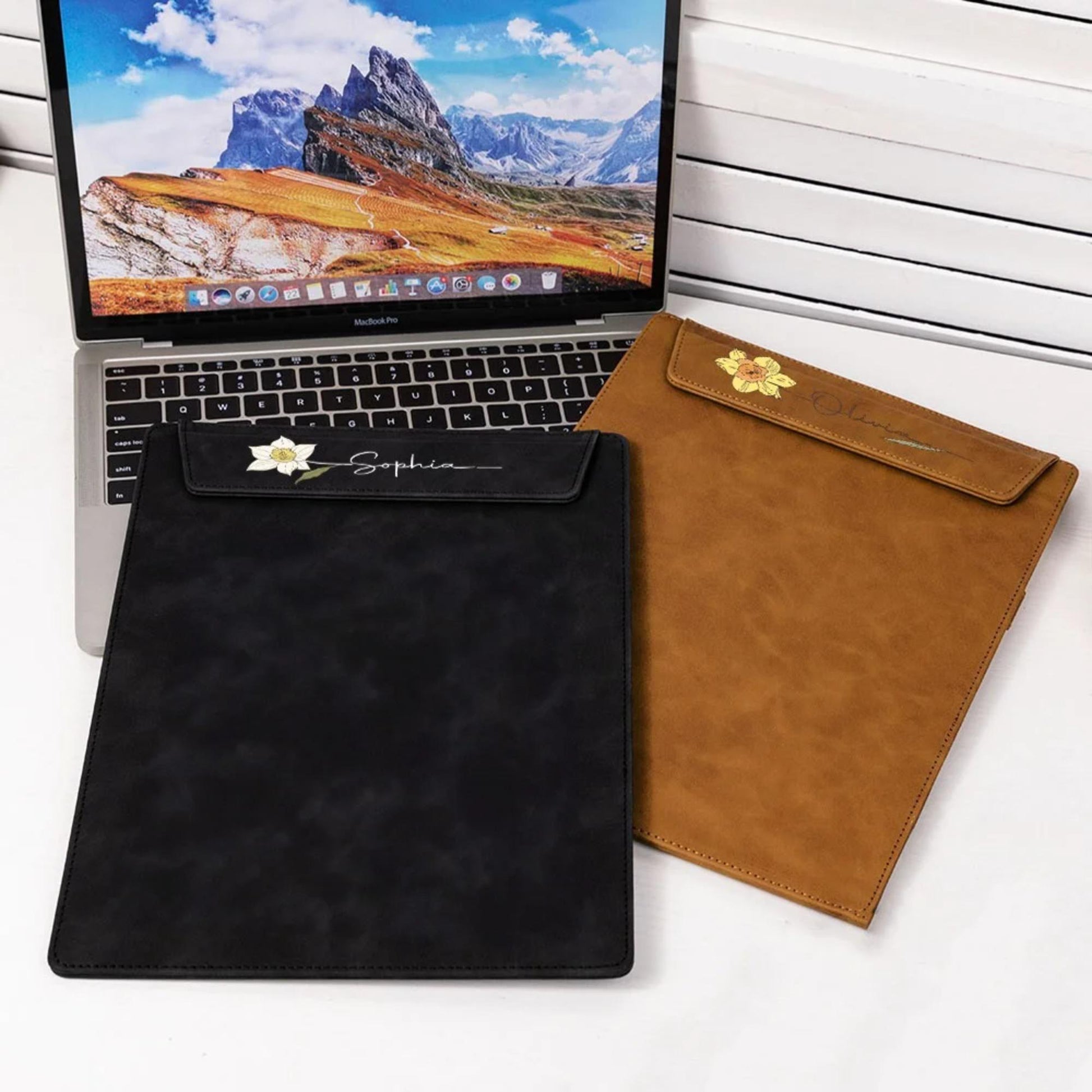 Celebrate milestones with the Personalized Birth Flower Clipboard, a thoughtful and practical gift designed for nurses, teachers, and colleagues. Combining personalized charm with everyday functionality, this clipboard features a beautifully crafted leather writing pad and a convenient pen loop, setting it apart from standard office accessories. It’s more than just a clipboard—it’s a meaningful keepsake that carries your recipient’s birth flower and name, making their workspace uniquely theirs.